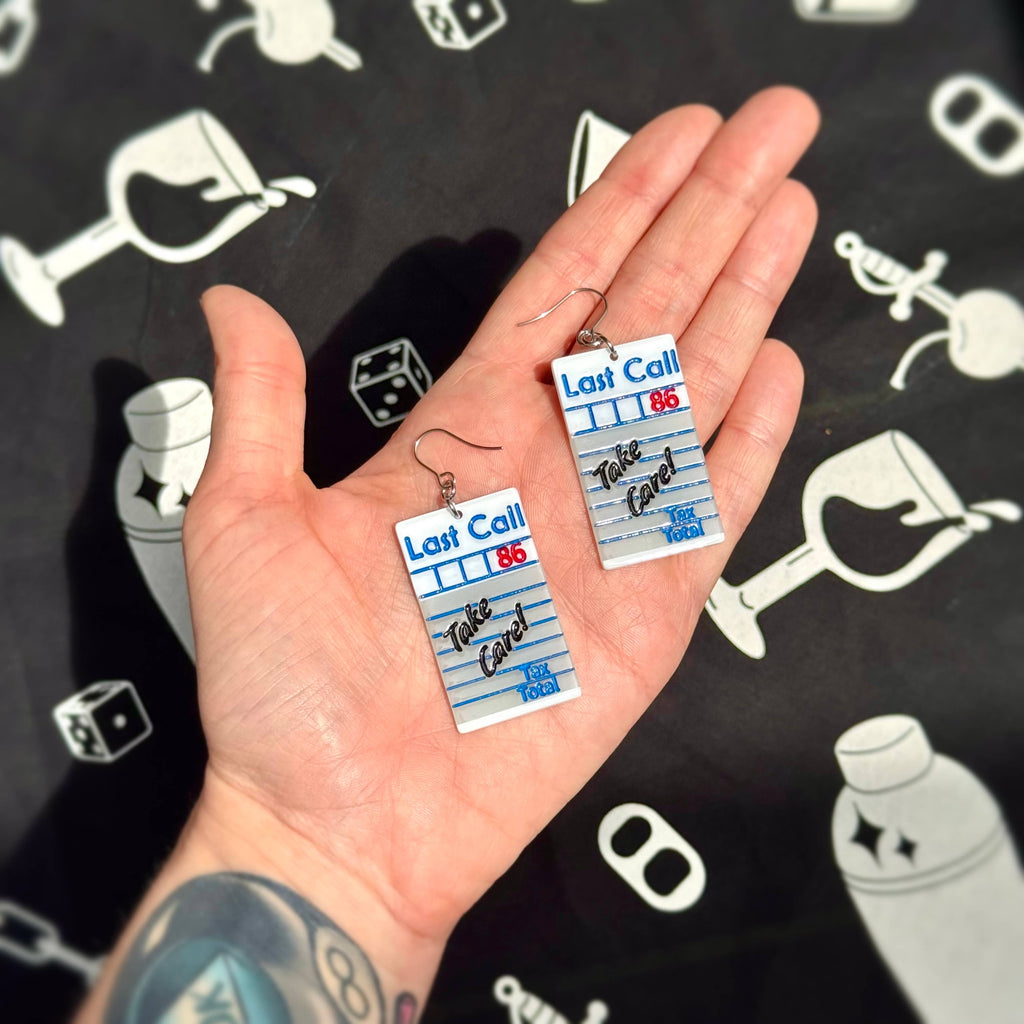 Every server needs a guest check! This one reads 'last call' and 'take care'.