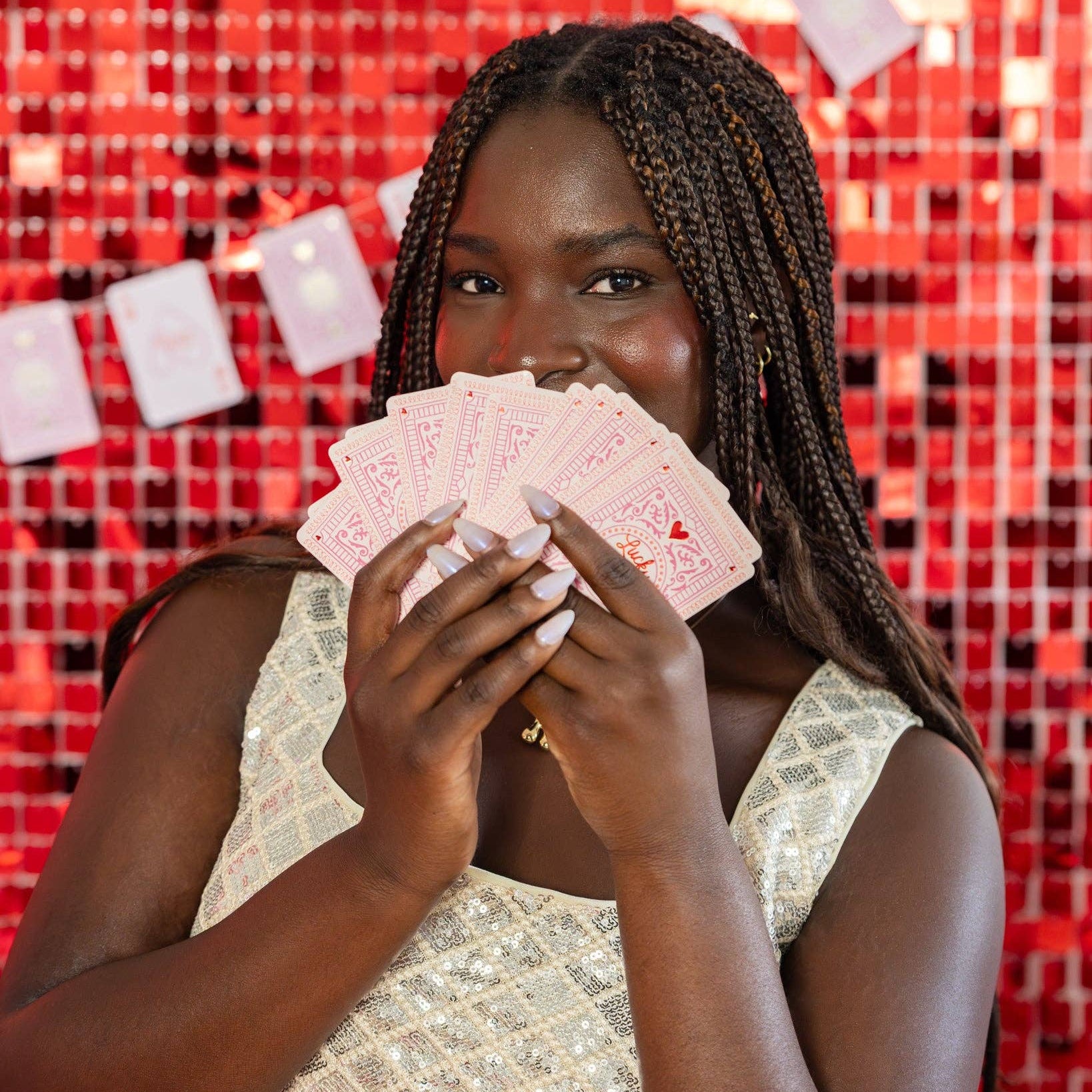 Lucky in Love Playing Cards bring the perfect blend of fun and flair to your next celebration! Featuring a unique design that captures the spirit of romance and good fortune, these coordinating cards are ideal for game nights, bridal showers, or any gathering where luck is on your side. Whether you're hosting a party or looking for a memorable party favor, these playing cards deliver style and entertainment in one charming package.