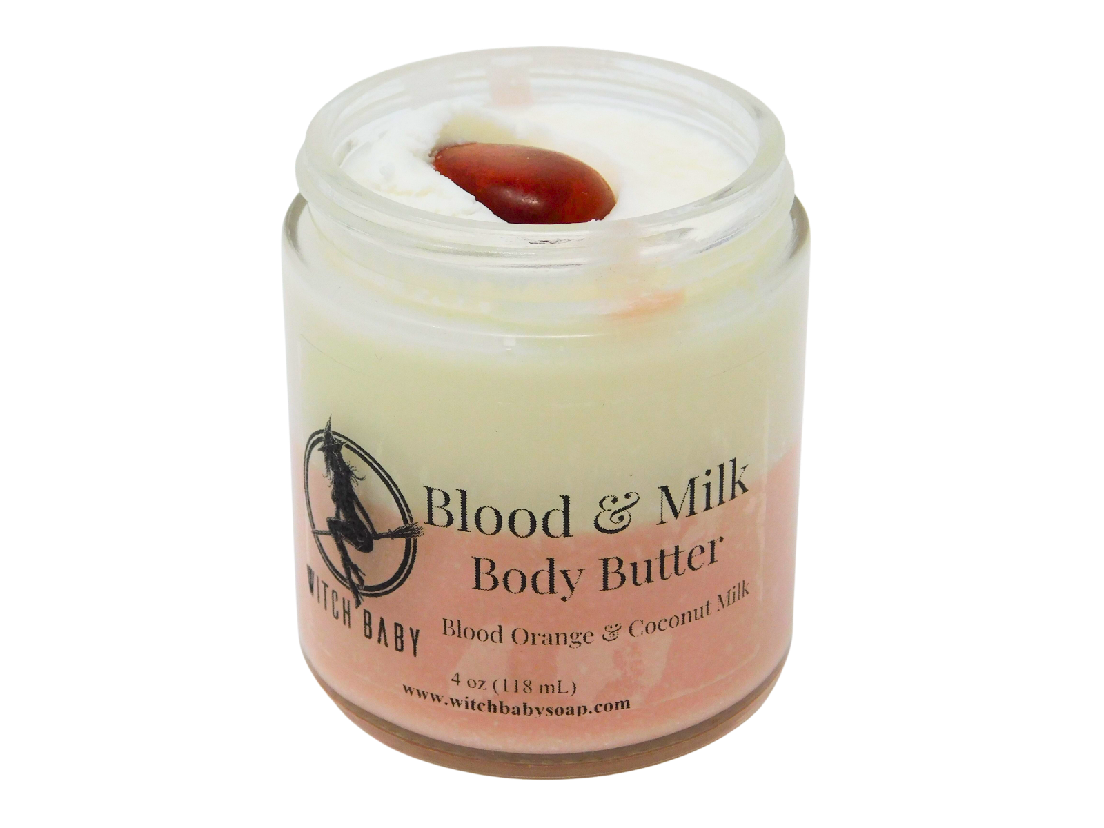 Blood & Milk Body Butter is packed full of coconut-y and blood orange-y goodness! Coconut can be used for aura cleansing, purifying, and protection. Coconut is ruled by the moon and blood orange is ruled by the sun creating an ideal balance. Blood orange give a feeling of protection, vibrancy, and warmth. Red jasper topped Blood & Milk Body Butter is an energetic tune up for your aura.