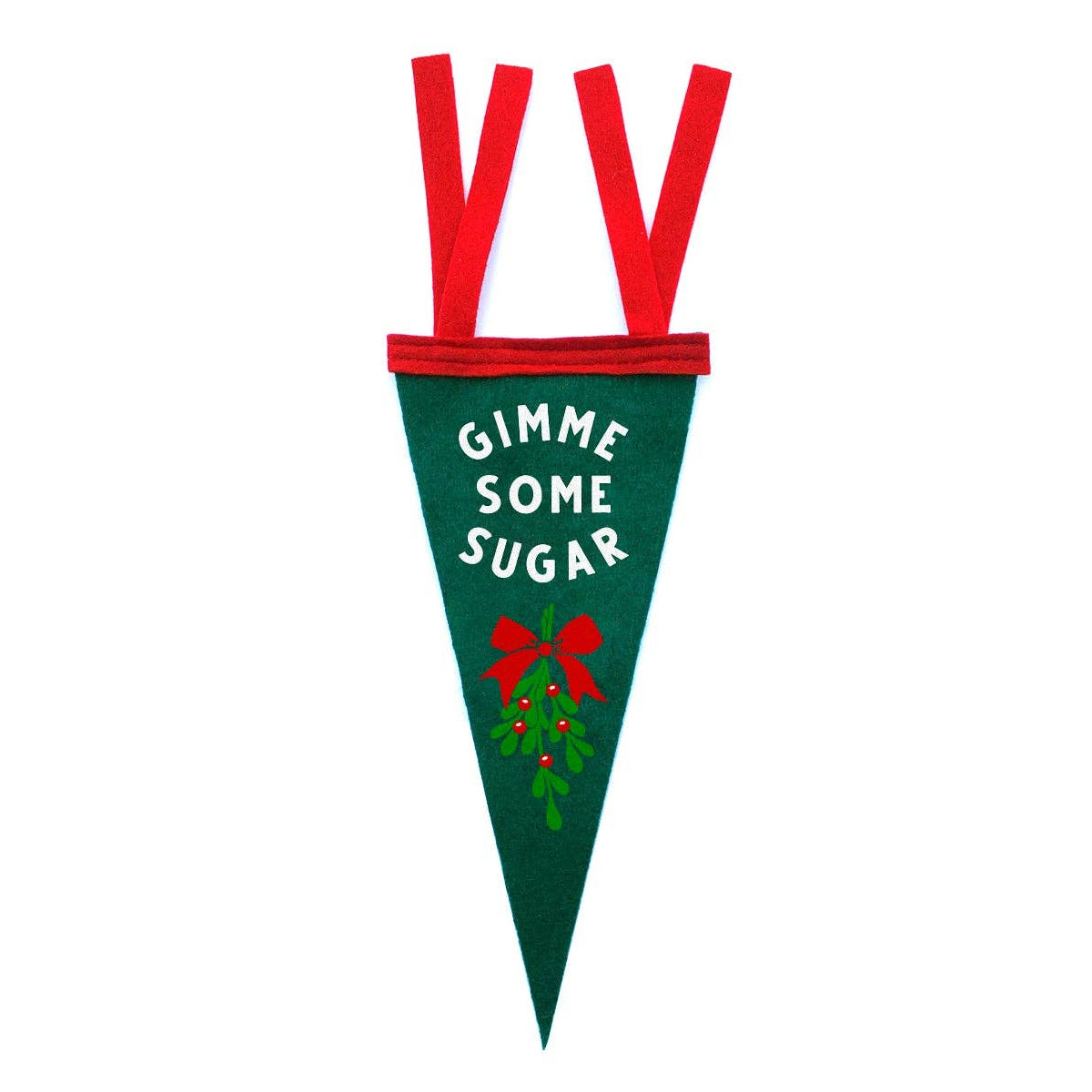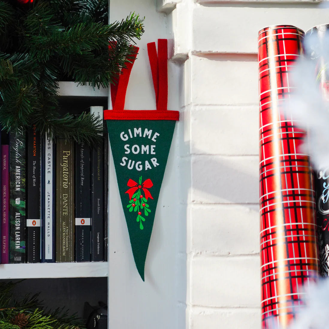 Was it mommy kissing Santa Claus, or was it you taking part in the classic winter tradition? Entice your significant other to share a little holiday sweetness with this green and red pennant featuring a sprig of mistletoe that'll last forever.