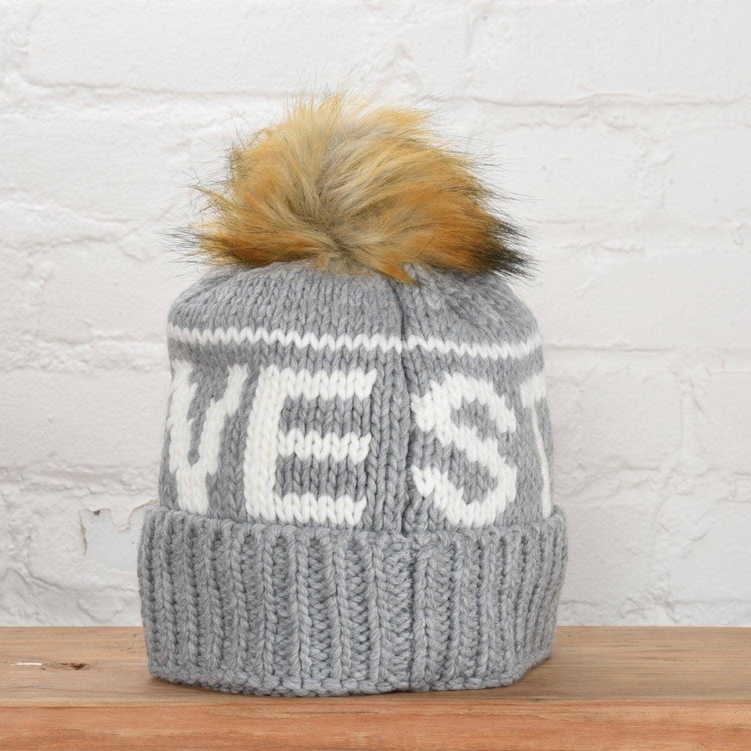 Midwest Beanie Faux Fur Pom - Grey/Ivory