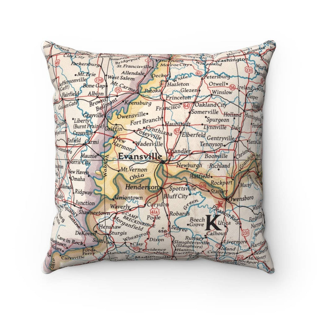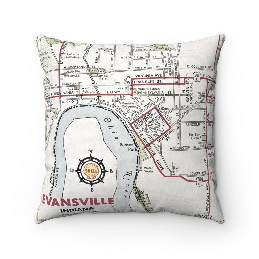 Downtown Evansville Indiana Map Throw Pillow Decorative Pillow