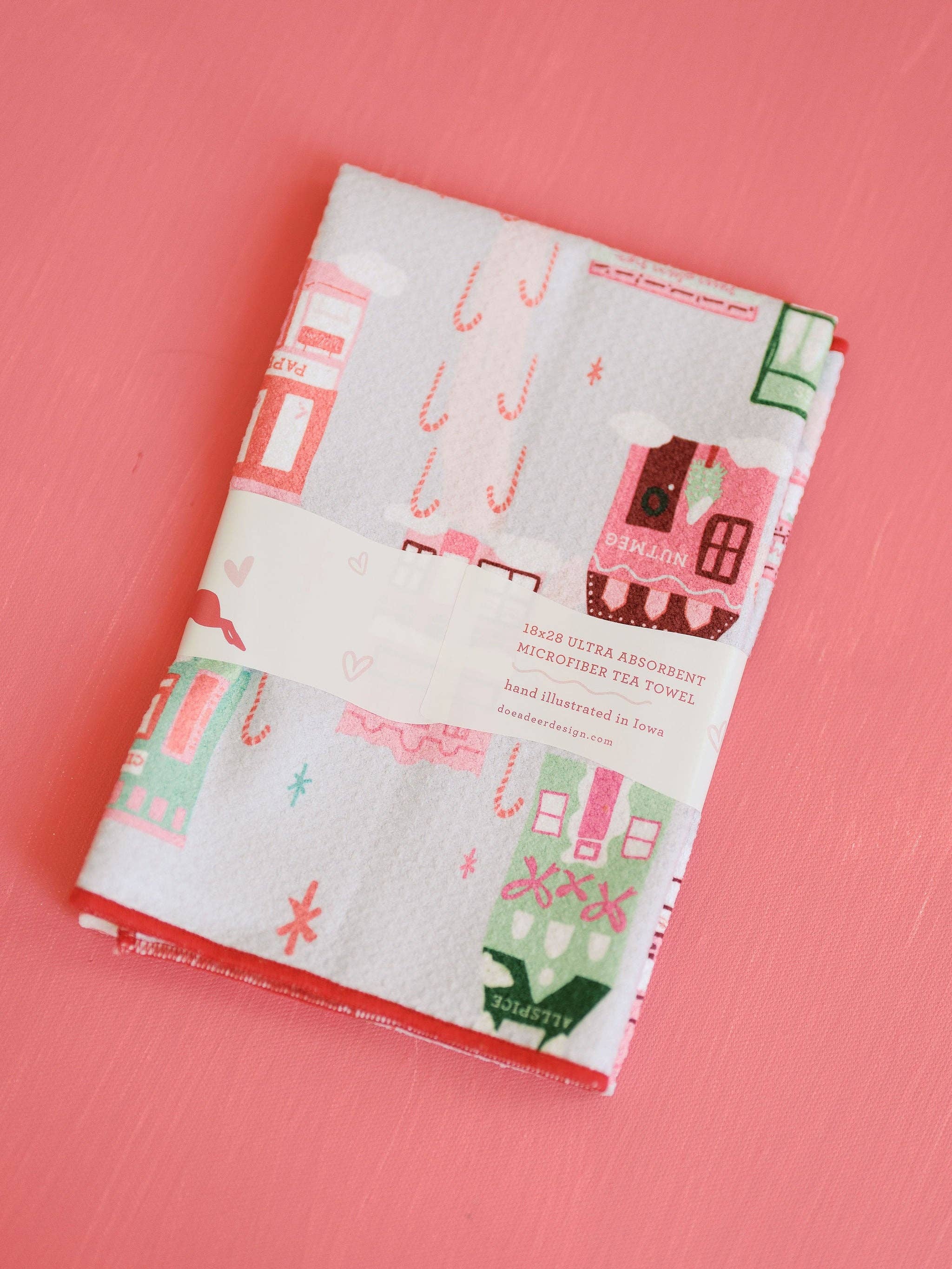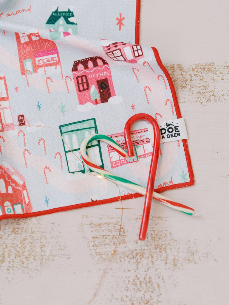 This Christmas In The Village Waffle Towel features ultra-absorbent texture perfect for drying dishes, wiping hands, or hanging over your oven door. Decked out with adorable village scenes, candy canes, and pastel pops of color, it brings both function and festive flair!