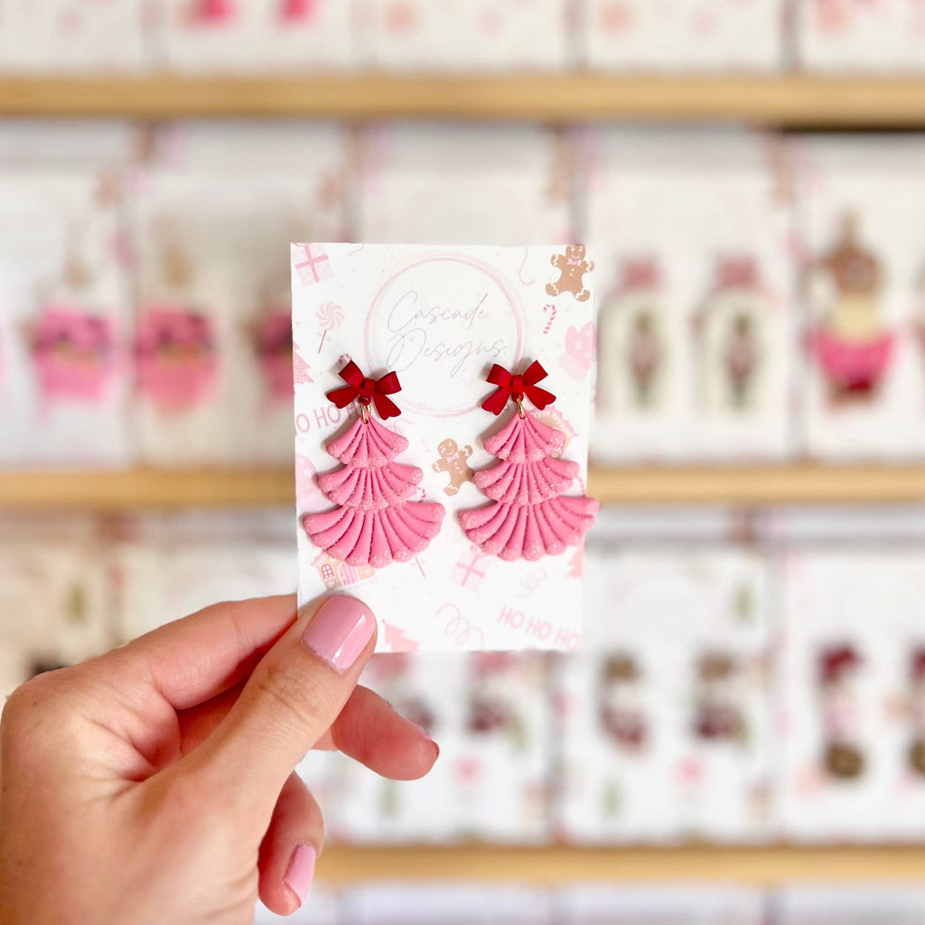 Add a touch of whimsy this winter with these frosted Christmas tree earring dangles. These earrings are handcrafted so actual pieces may have slight variations from the displays pictured.
