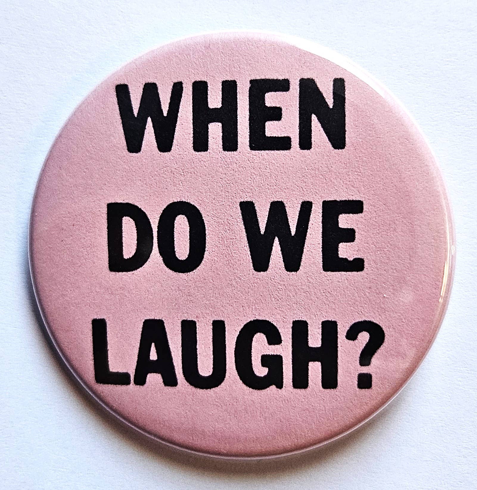 Vintage Button When Do We Laugh - is backordered and will ship as soon as it is back in stock.