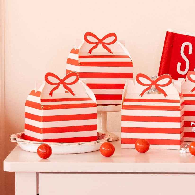 Red & Pink Stripe Gable Boxes - Pack of 6