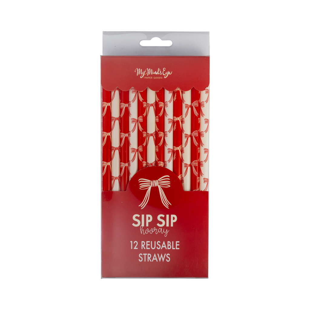 Christmas Bows Reusable Straws - Pack of 12