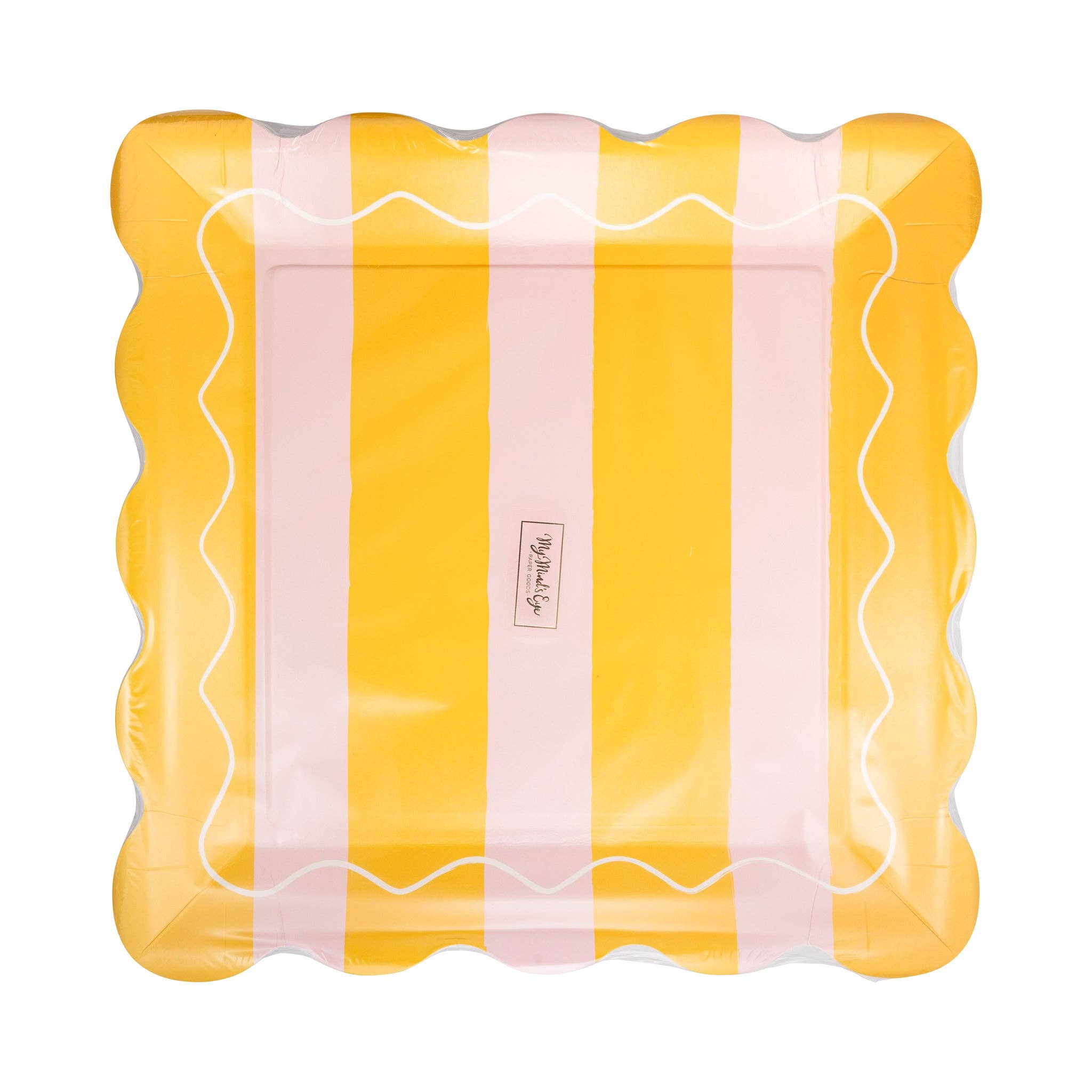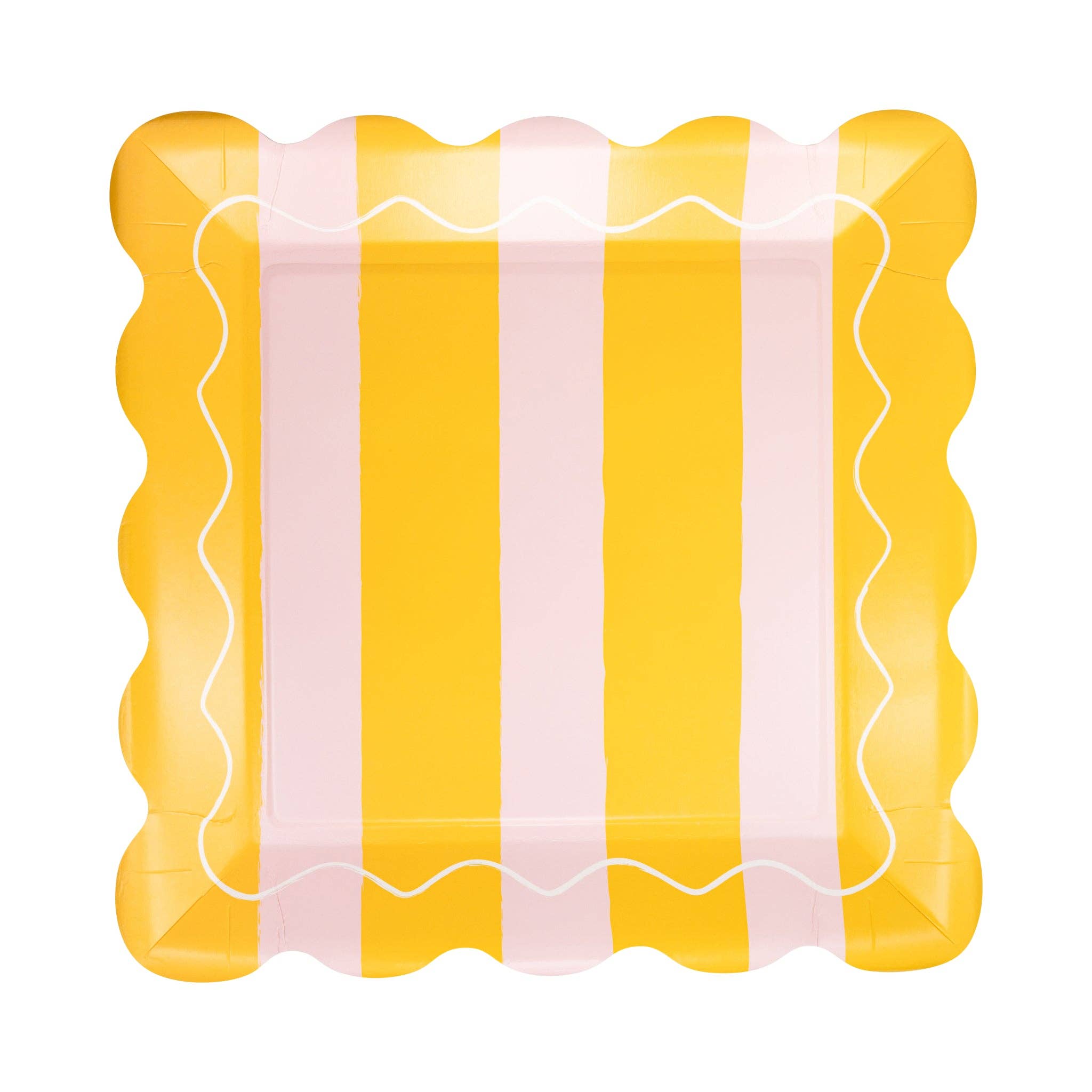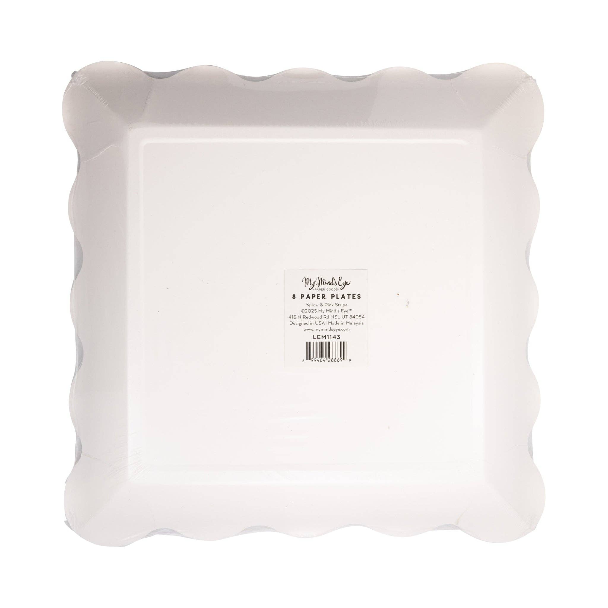 Yellow & Pink Striped Scalloped Square Paper Plates - Set of 8