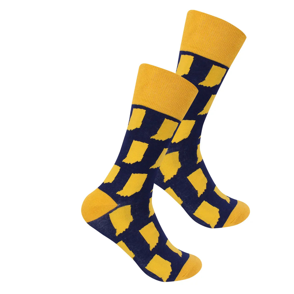 Indiana State Outline Socks - Navy & Gold