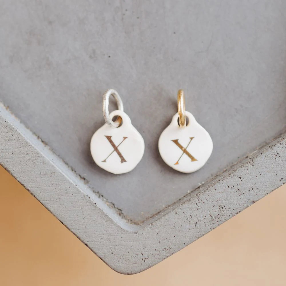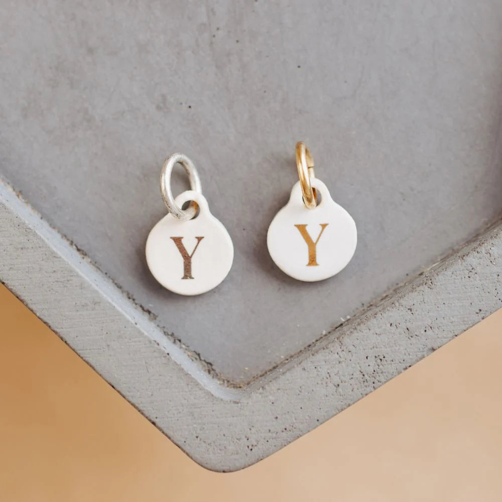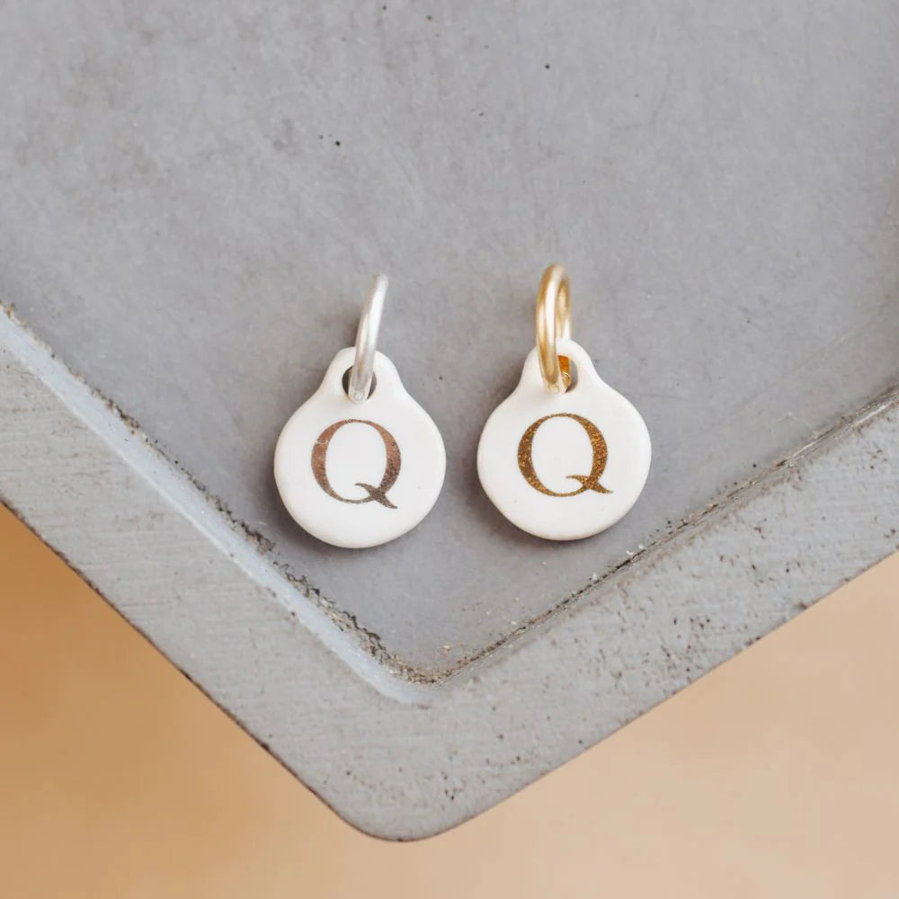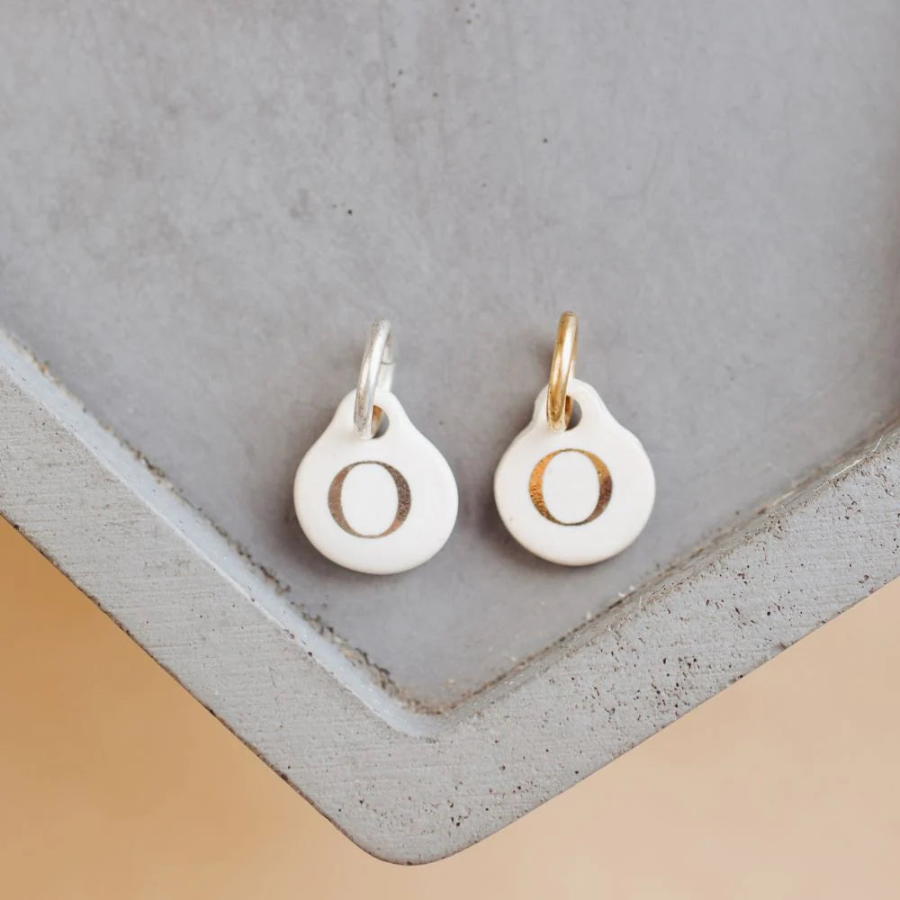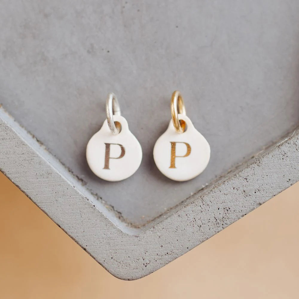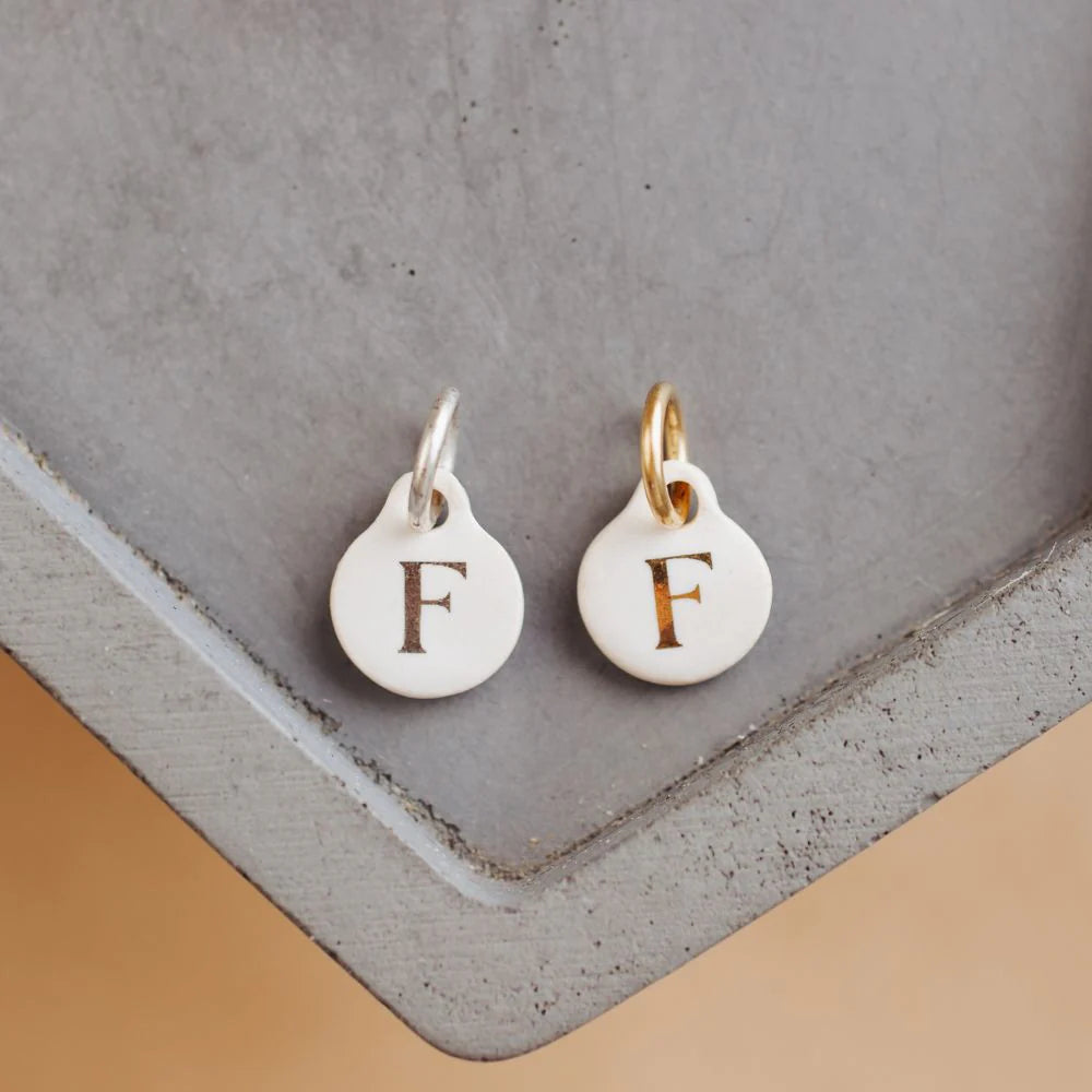 Time to add charms! These ceramic initial charms are made from high-fired stoneware clay. Choose between two different metal initials and jump rings: gold or silver.