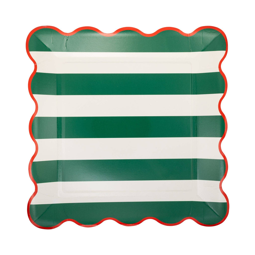 Red & Green Striped Paper Plates - Pack of 8