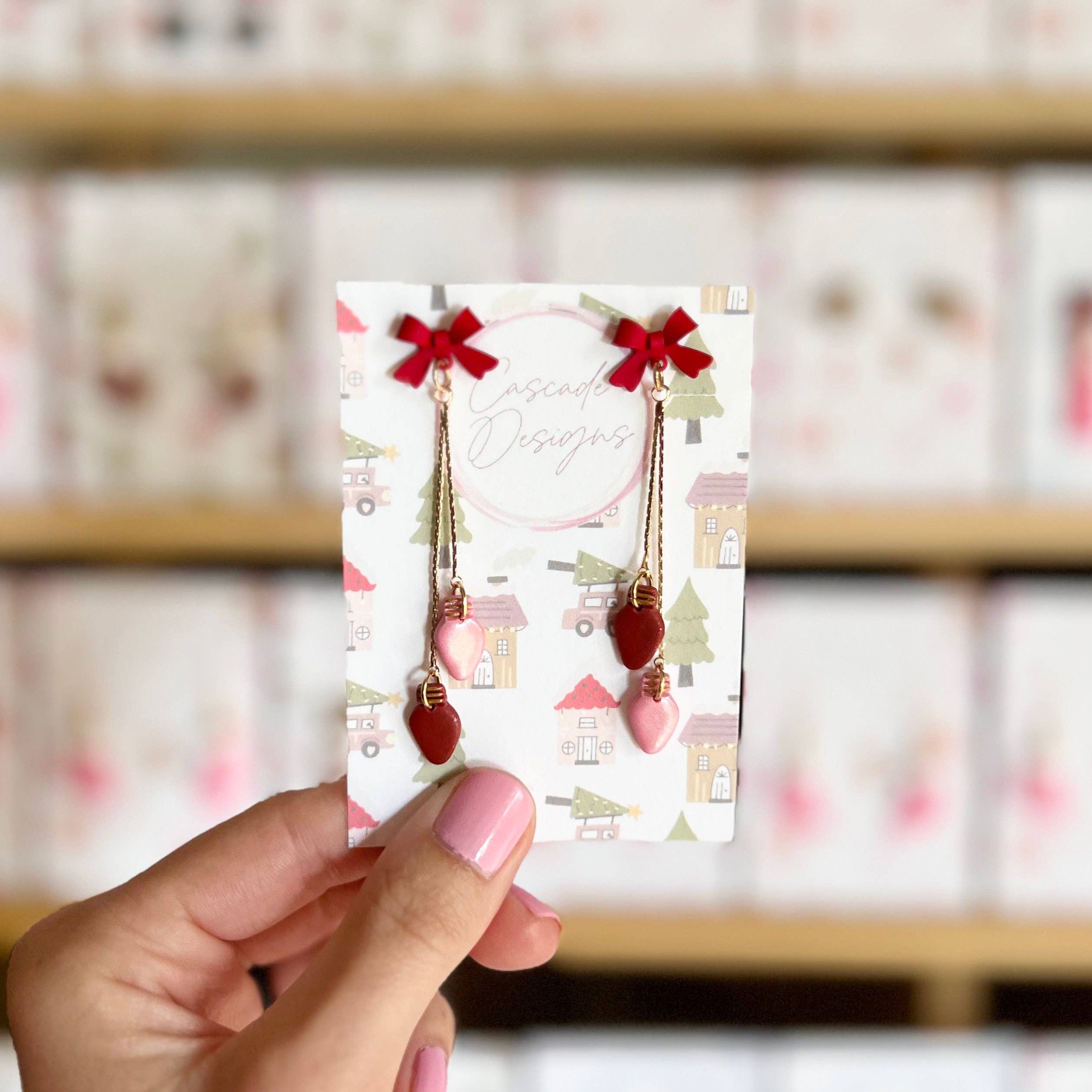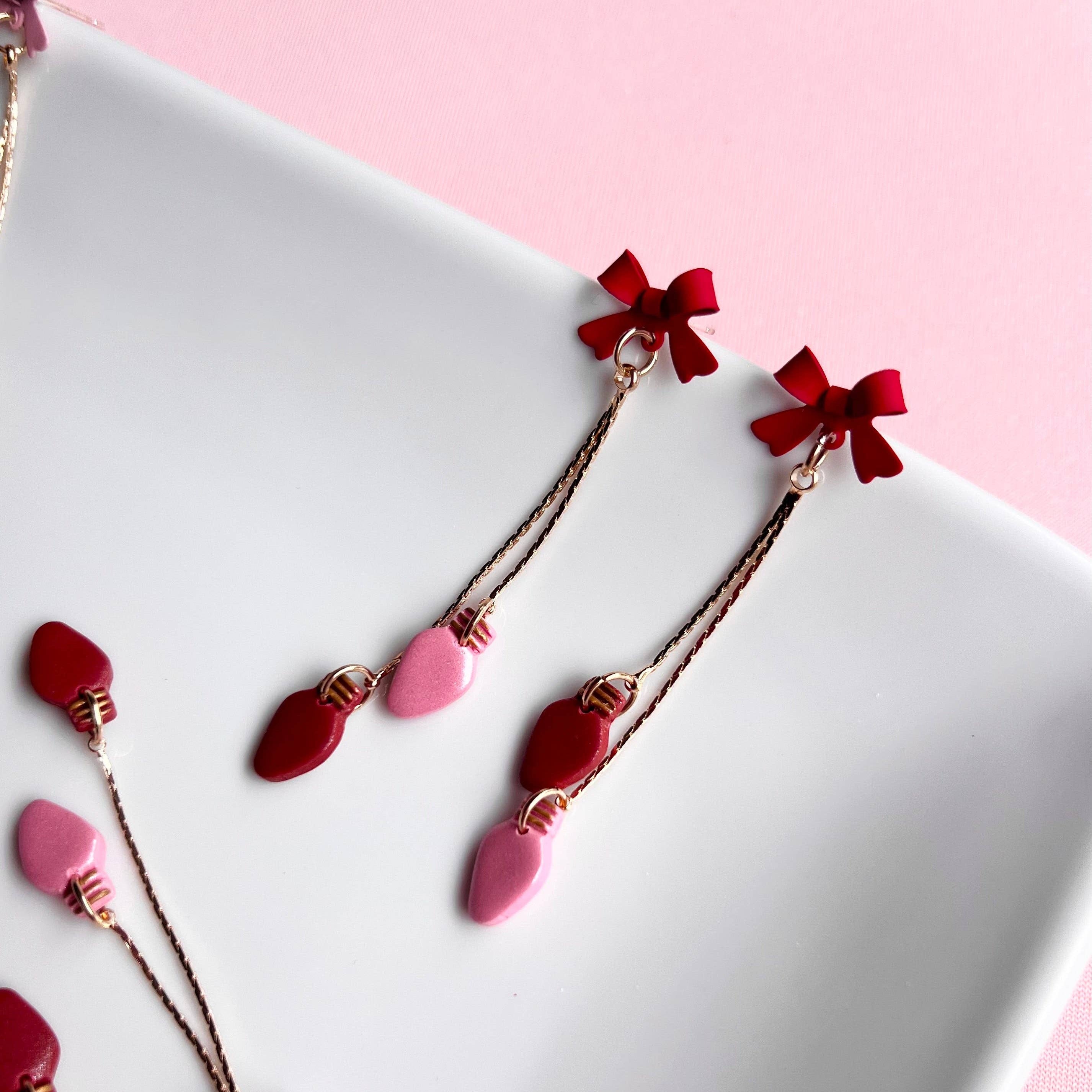 Add a touch of whimsy this winter with these glimmering Christmas light dangles. These earrings are handcrafted so actual pieces may have slight variations from the displays pictured.