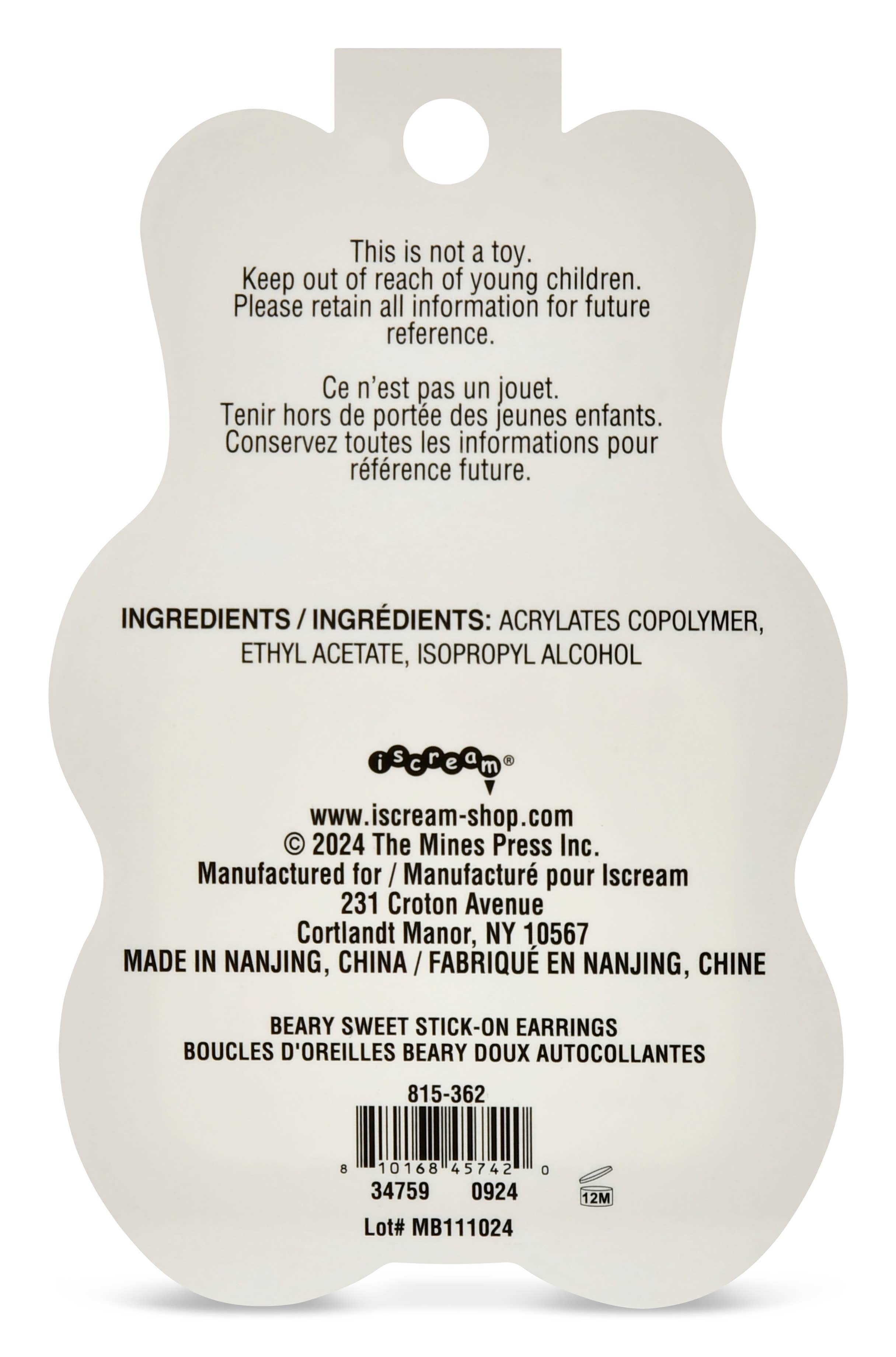 Beary Sweet Stick-On Earrings - está en espera y se enviará tan pronto como vuelva a estar en stock