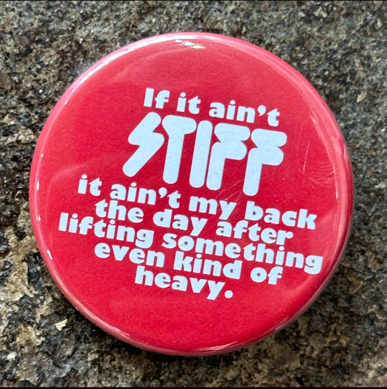 "If it ain't Stiff it ain't my back the day after lifting something even kind of heavy."