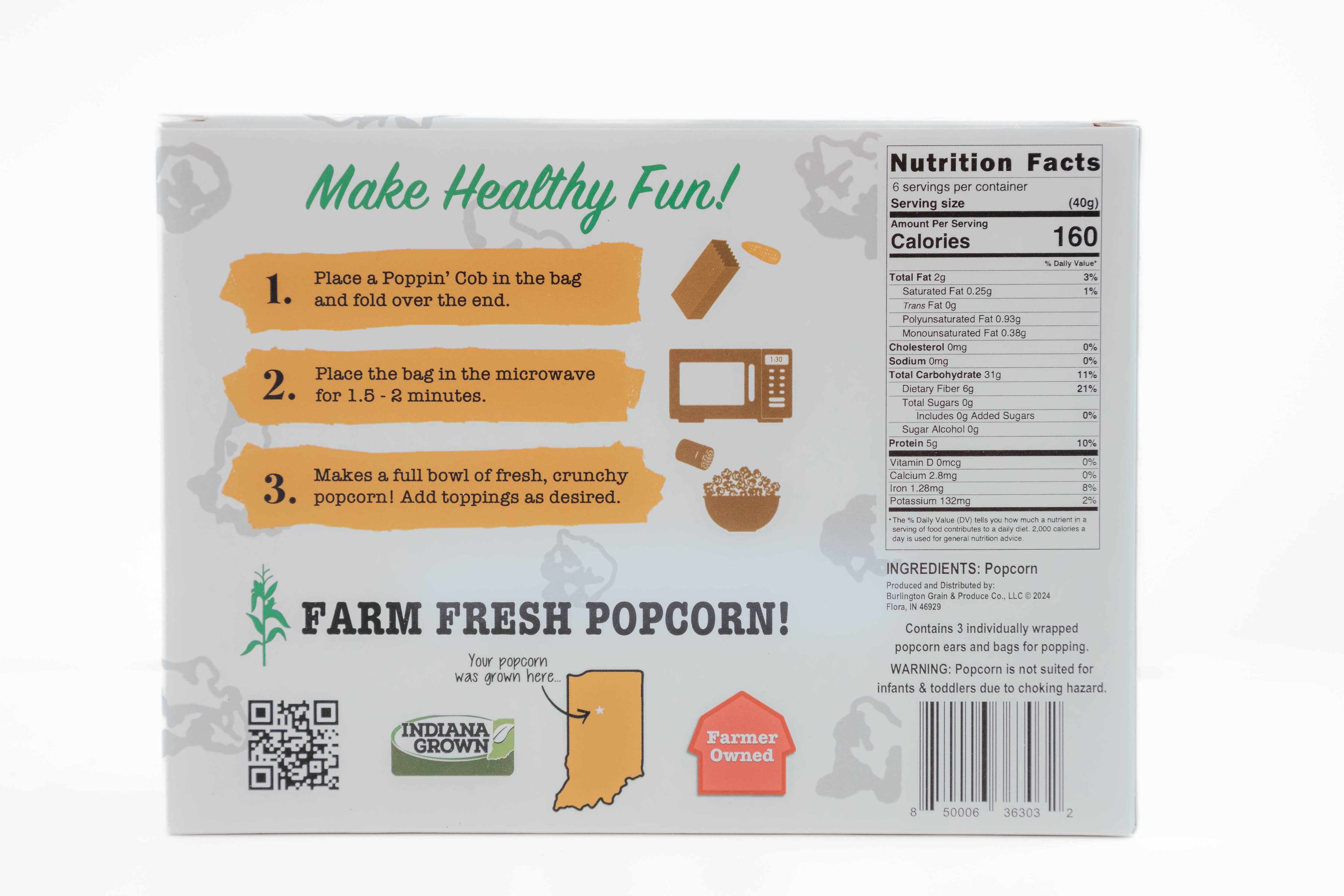 Grown with care on an Indiana family farm, Poppin’ Cobs Popcorn offers a one-of-a-kind snacking experience. Each 3-pack includes whole popcorn cobs and microwave-safe bags—just pop and enjoy in about 2 minutes. Fun, simple, and all-natural, it’s a unique product that’s perfect for families, foodies, gift sets, or anyone who loves a wholesome snack with a twist.