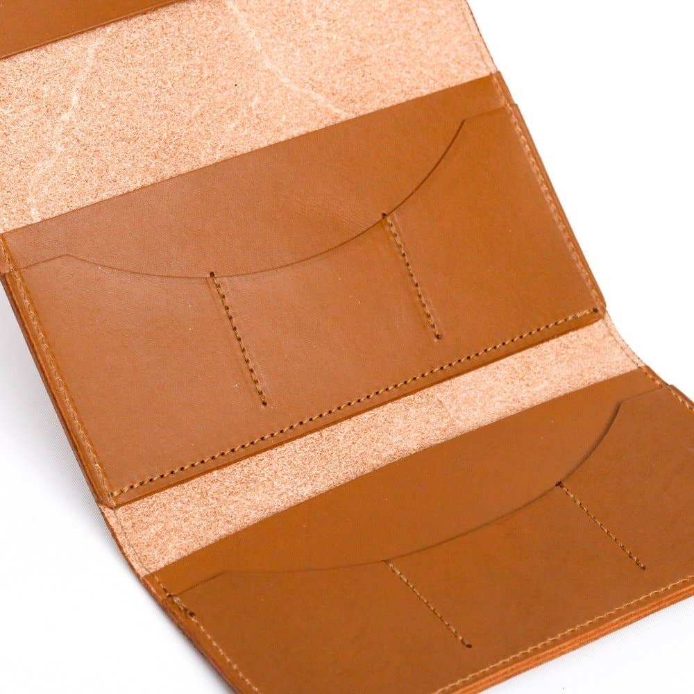 The Envelope Wallet is a traditional 8-pocket envelope wallet with six cards slots and two cash sleeves. Includes a solid brass magnetic closure. Made in the USA with full-grain leather.