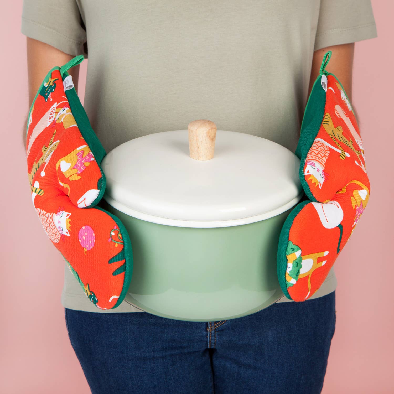 Mischievous merry-makers are feline fine about the festive season. Made from 100% cotton, these heat-resistant oven mitts are lined and insulated. Easy-care, gift-ready, and sure to be a welcome addition to any chef’s kitchen.
