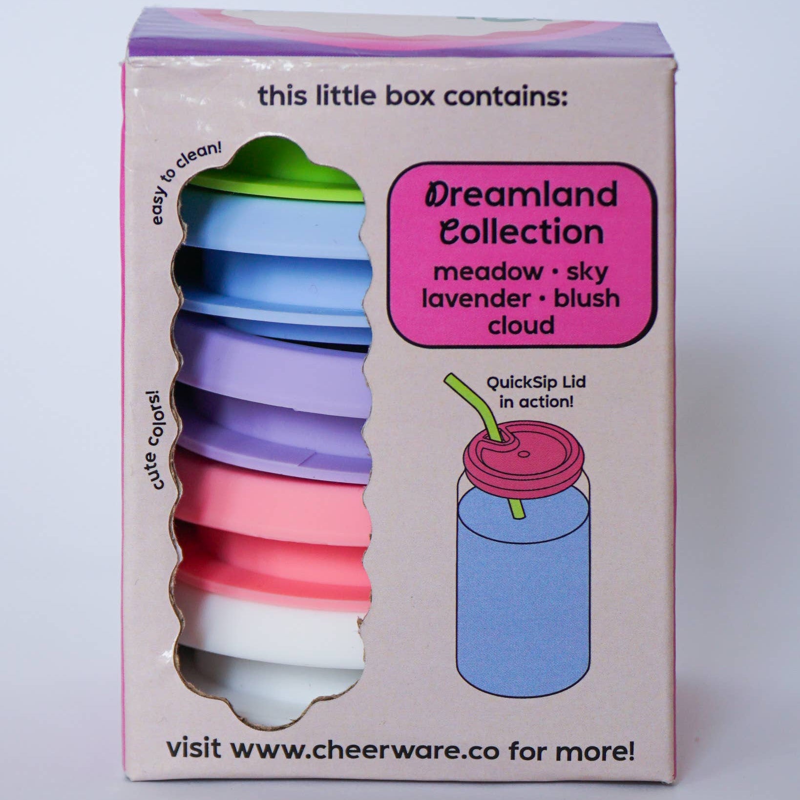 • The Dreamland collection has meadow green, sky blue, lavender, blush pink, and cloud white.